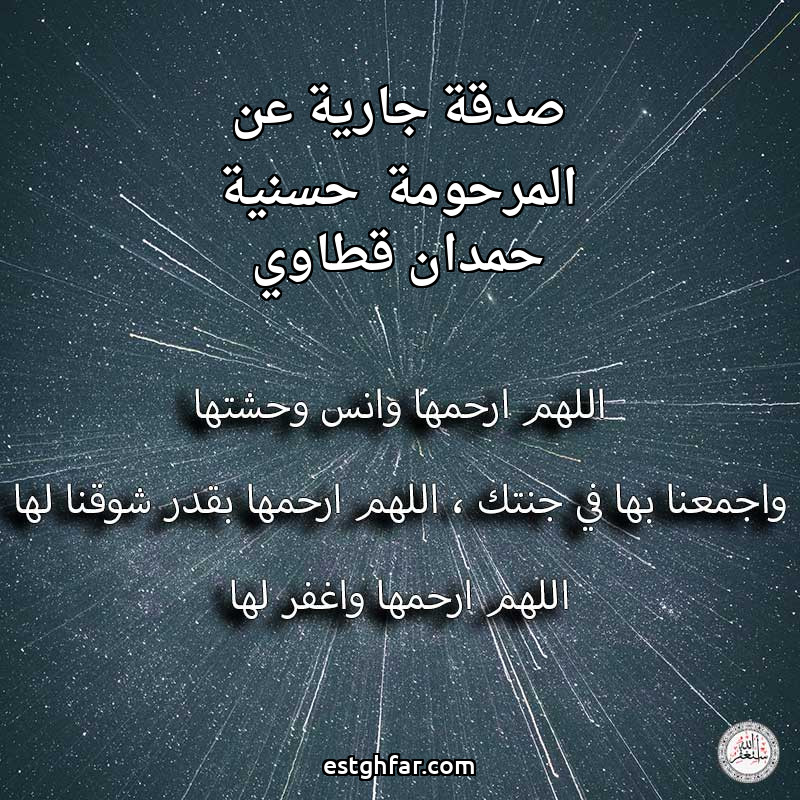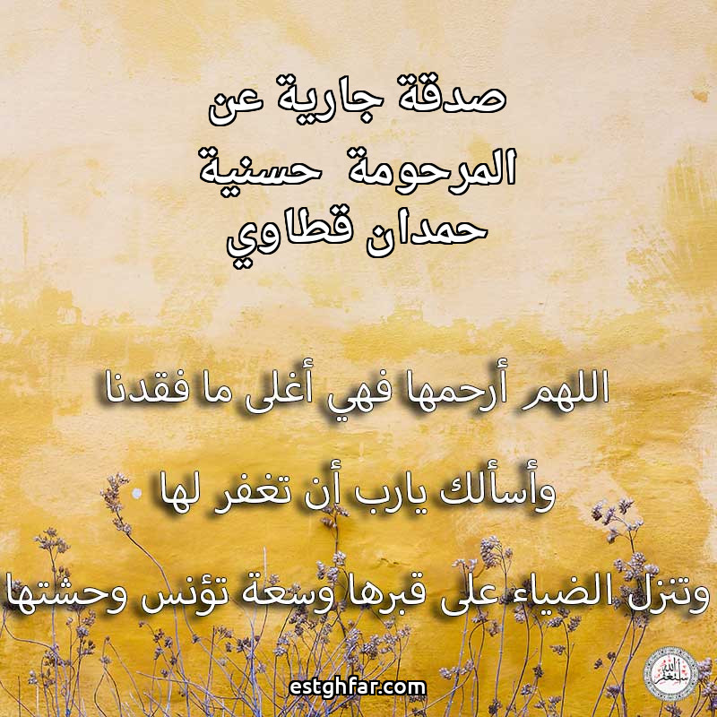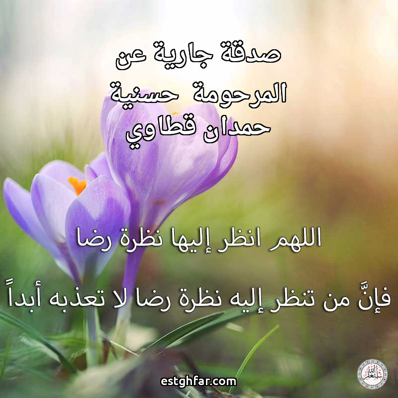 صدقة جارية عن المرحومة حسنية حمدان قطاوي