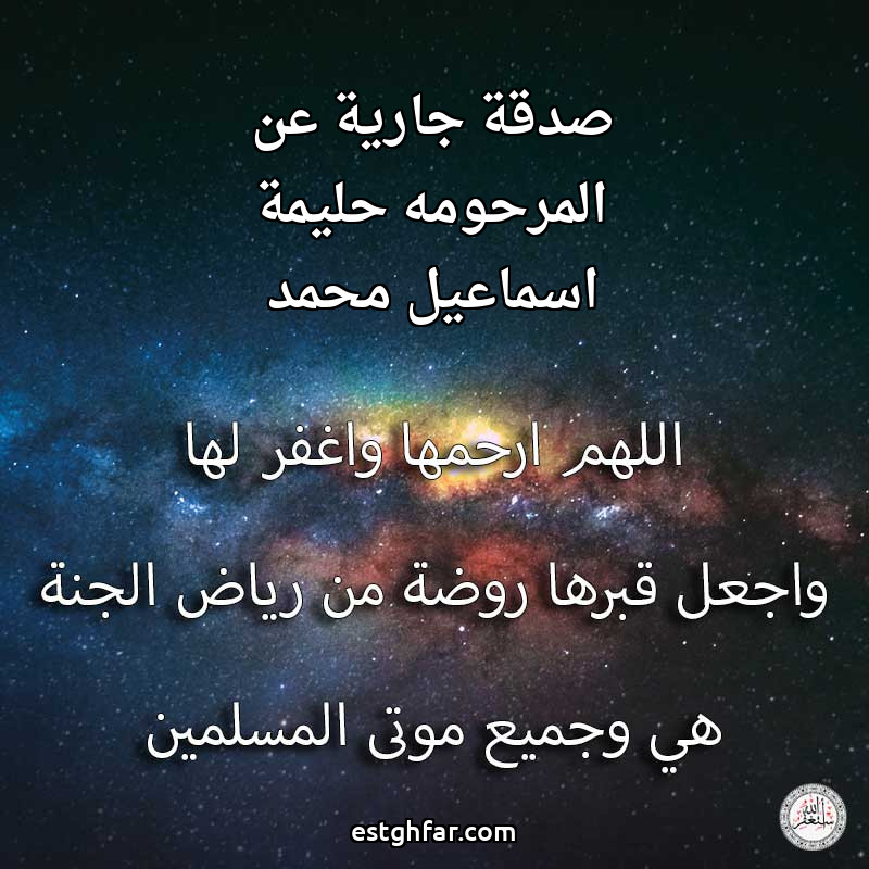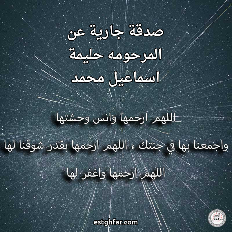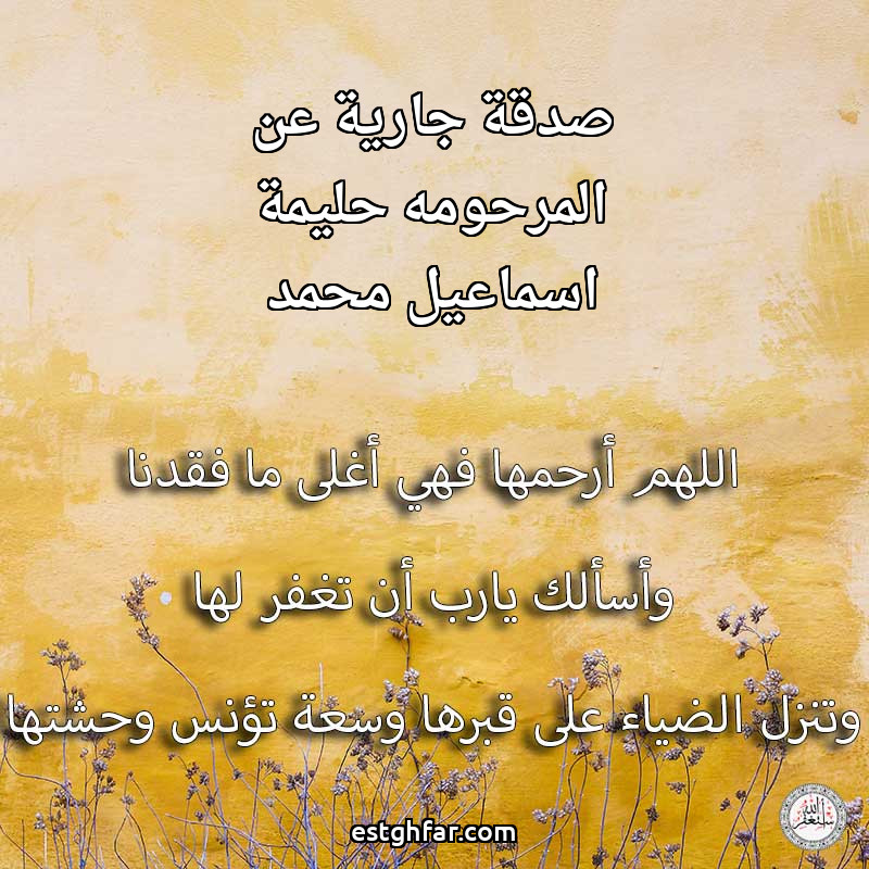 صدقة جارية عن المرحومه حليمة اسماعيل محمد
