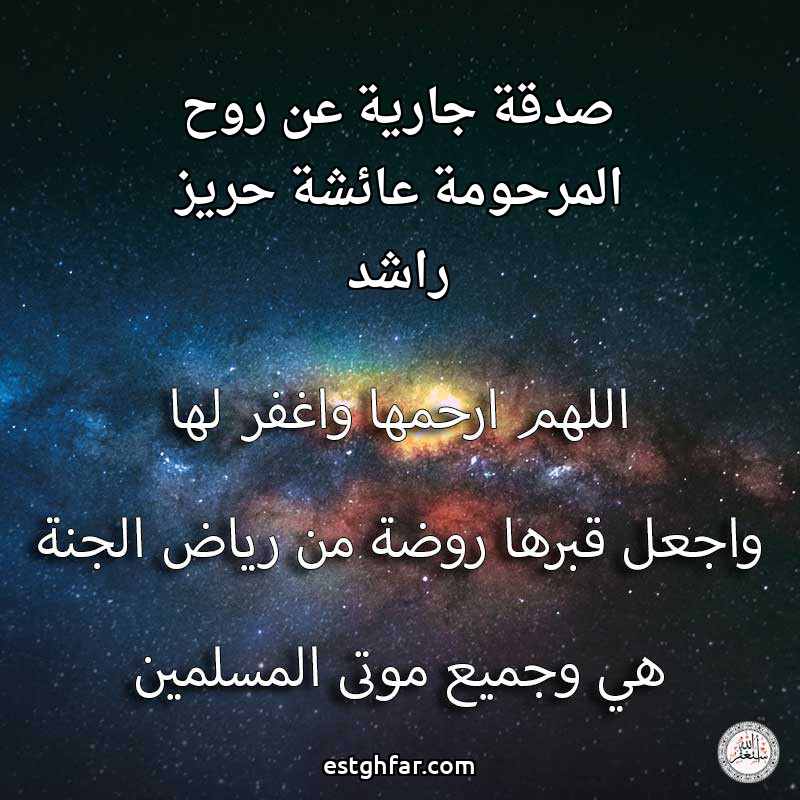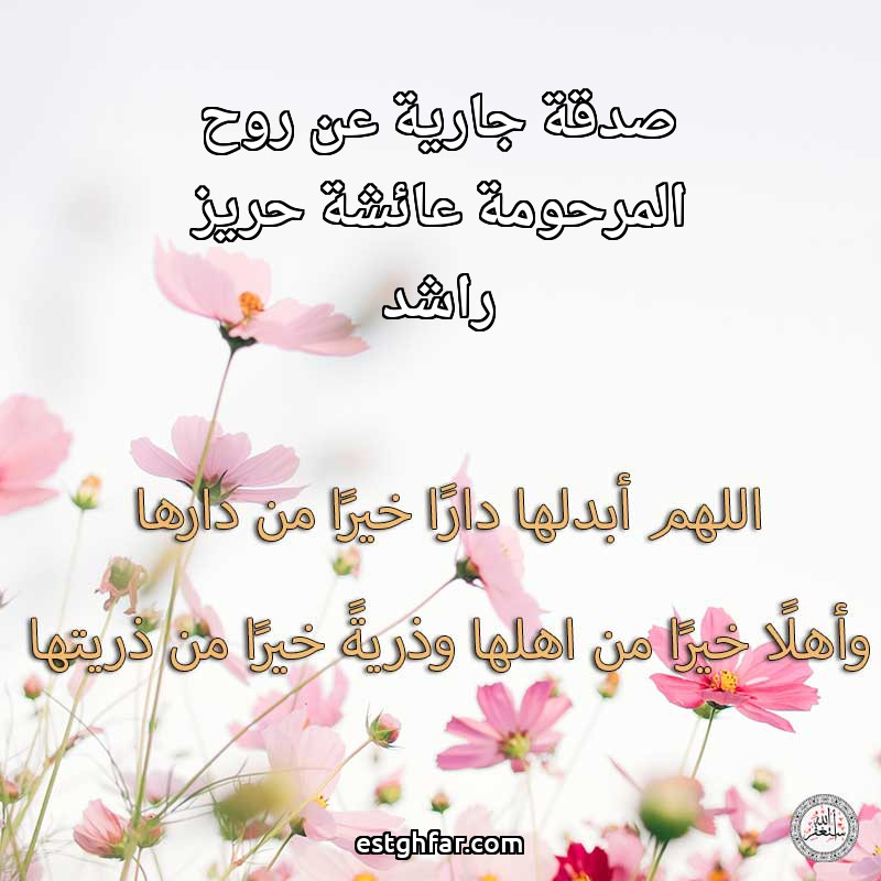 صدقة جارية عن روح المرحومة عائشة حريز راشد