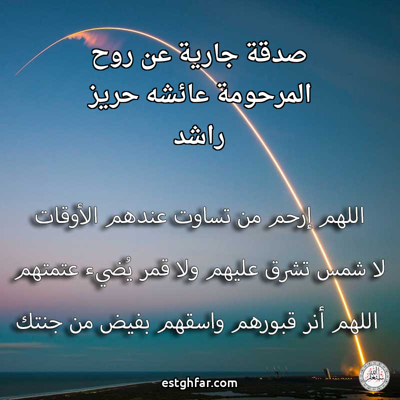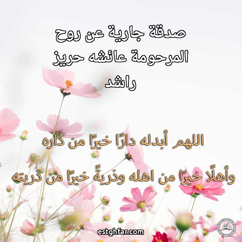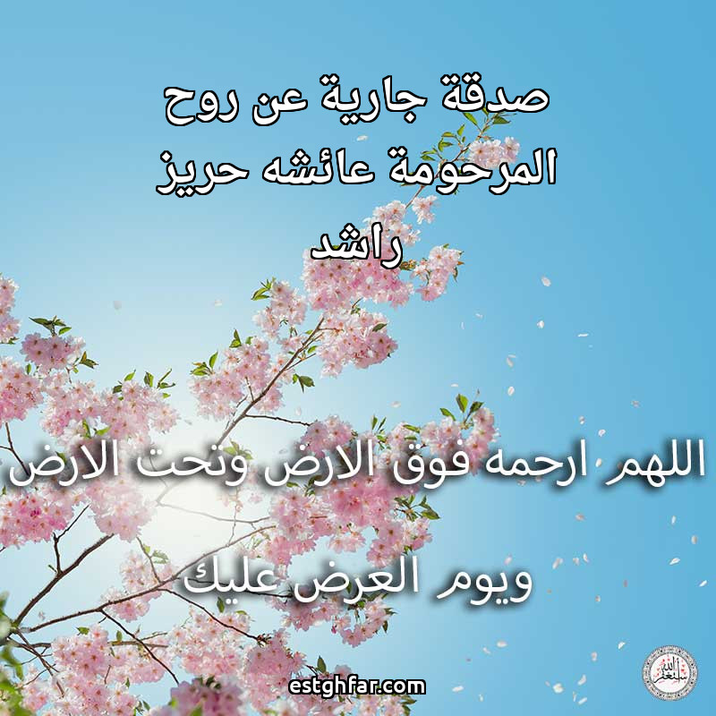 صدقة جارية عن روح المرحومة عائشه حريز راشد