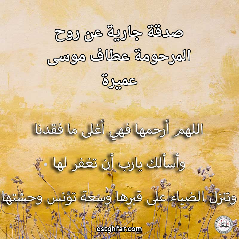 صدقة جارية عن روح المرحومة عطاف موسى عميرة