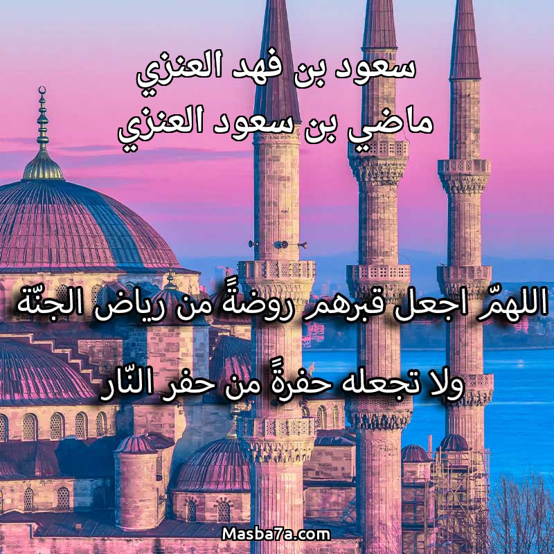 اللهم ارحم ( سعود بن فهد العنزي ماضي بن سعود العنزي ) وانس وحشتهم واجمعنا بهم في جنتك ، اللهم ارحمهم بقدر شوقنا لهم اللهم ارحمهم واغفر لهم.