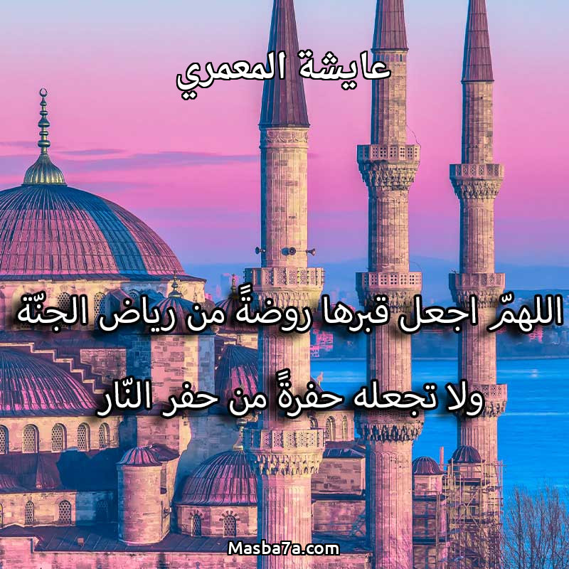 اللهم ارحم ( عايشة المعمري ) وانس وحشتها واجمعنا بها في جنتك ، اللهم ارحمها بقدر شوقنا لها اللهم ارحمها واغفر لها .