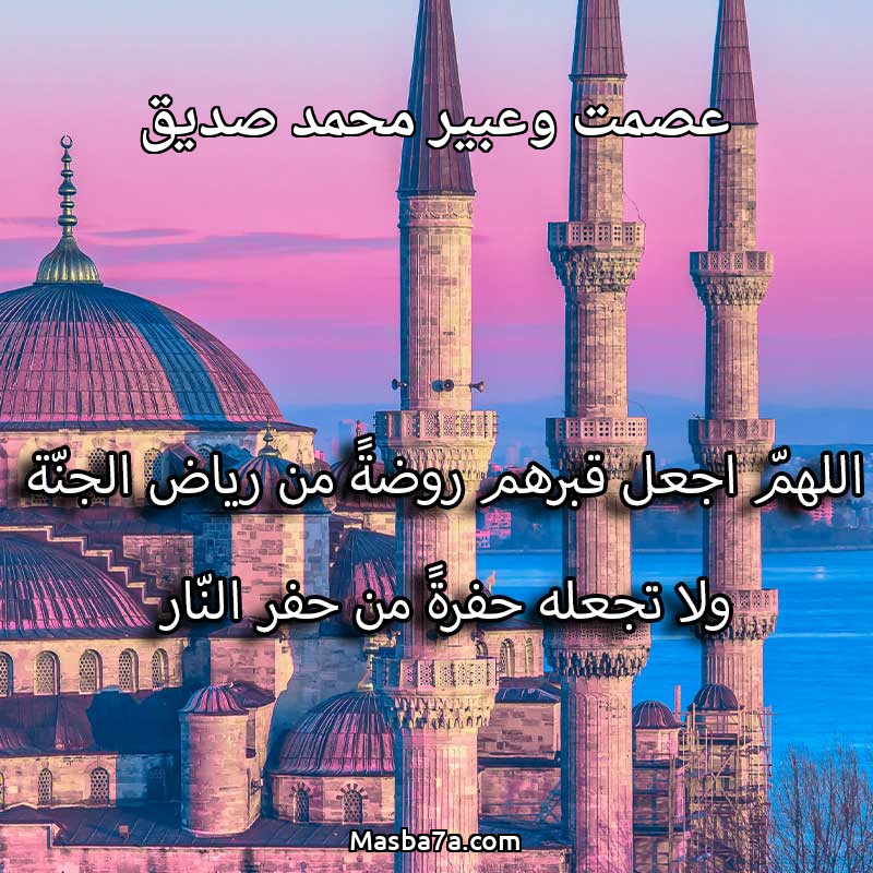 اللهم ارحم ( عصمت وعبير محمد صديق ) وانس وحشتهم واجمعنا بهم في جنتك ، اللهم ارحمهم بقدر شوقنا لهم اللهم ارحمهم واغفر لهم.