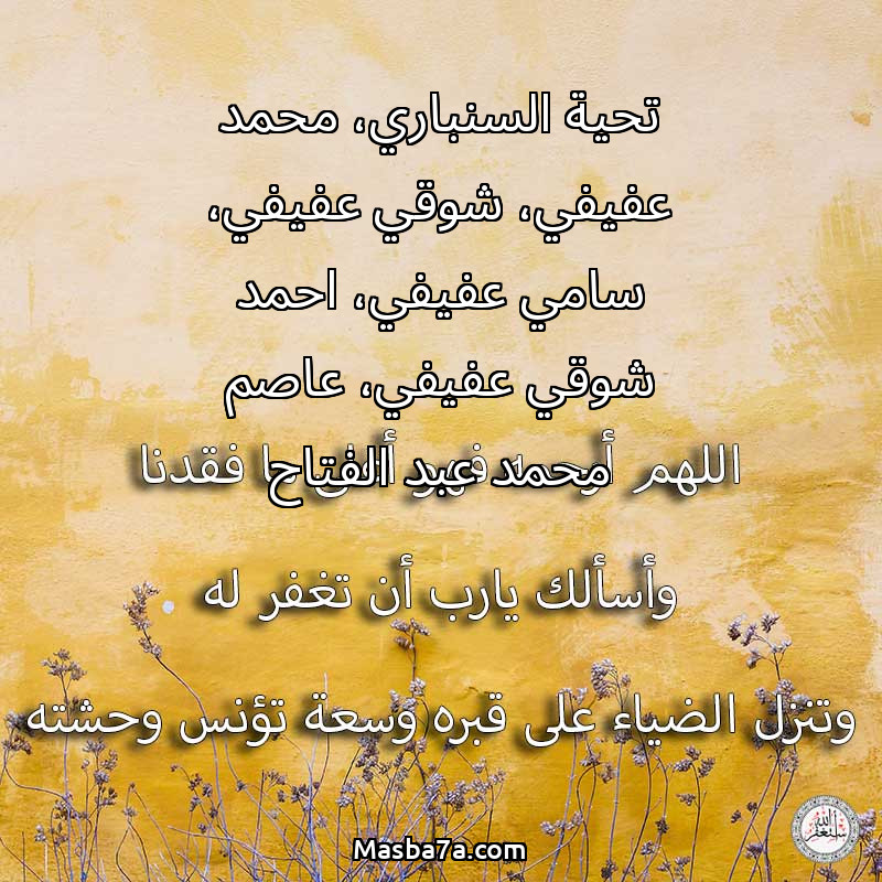 دعاء عن روح المرحوم تحية السنباري، محمد عفيفي، شوقي عفيفي، سامي عفيفي، احمد شوقي عفيفي، عاصم محمد عبد الفتاح