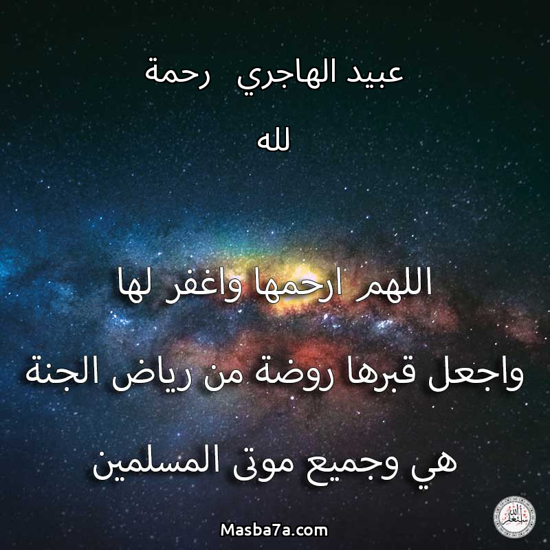 اللهم ارحم ( عبيد الهاجري - رحمة لله ) وانس وحشتها واجمعنا بها في جنتك ، اللهم ارحمها بقدر شوقنا لها اللهم ارحمها واغفر لها .