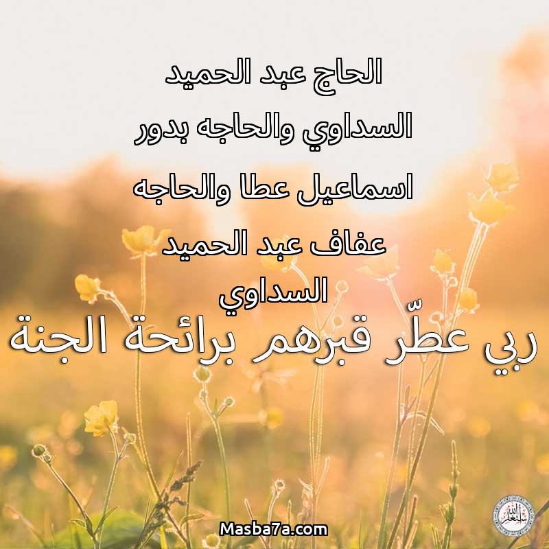 دعاء عن أرواح المرحومين الحاج عبد الحميد السداوي والحاجه بدور اسماعيل عطا والحاجه عفاف عبد الحميد السداوي