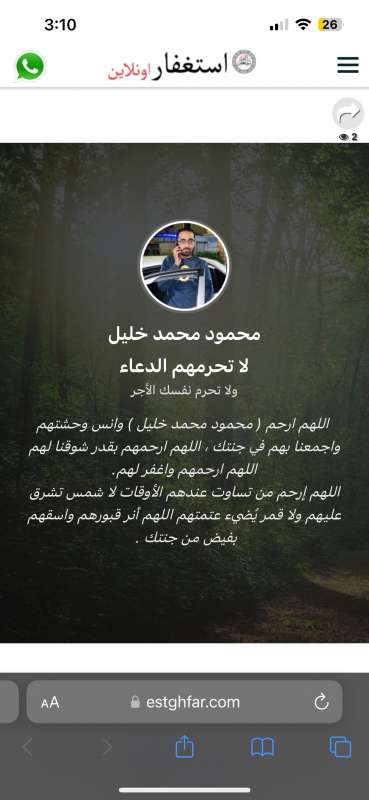 اللهم ارحم ( محمود محمد خليل ) وانس وحشته واجمعنا به في جنتك ، اللهم ارحمه بقدر شوقنا له اللهم ارحمه واغفر له .