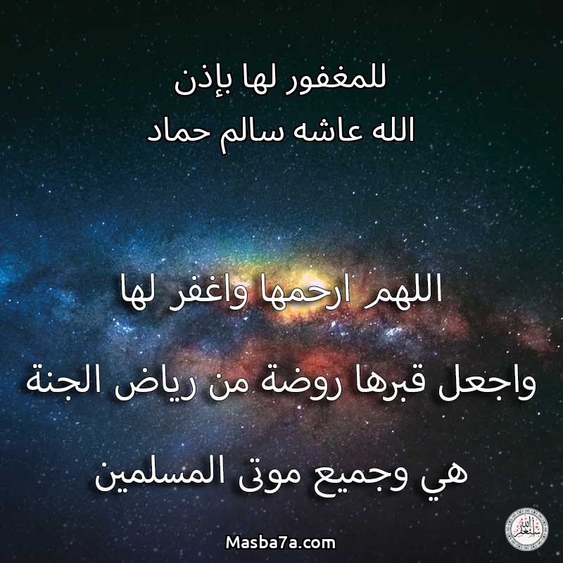 اللهم ارحم ( للمغفور لها بإذن الله عاشه سالم حماد ) وانس وحشتها واجمعنا بها في جنتك ، اللهم ارحمها بقدر شوقنا لها اللهم ارحمها واغفر لها .