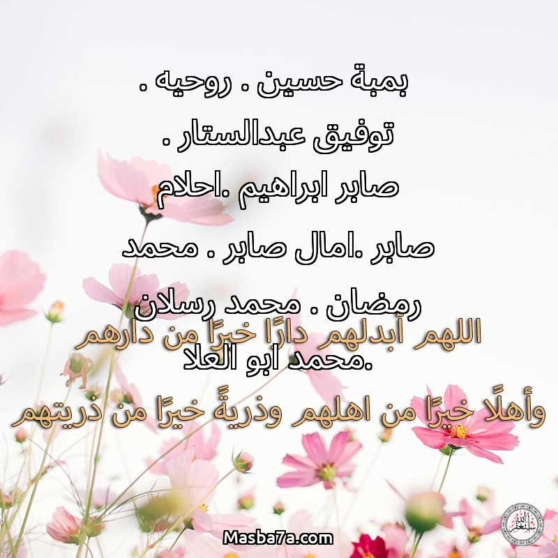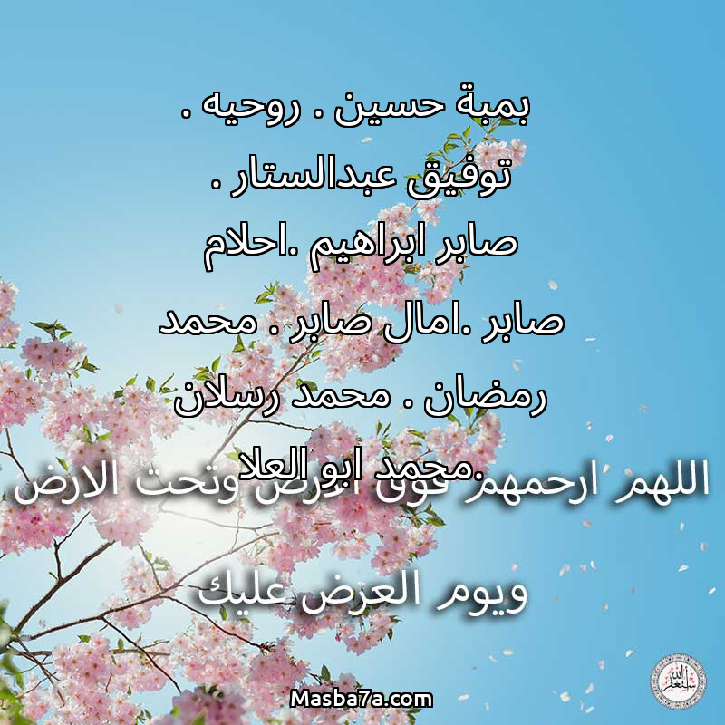 دعاء عن أرواح المرحومين بمبة حسين . روحيه . توفيق عبدالستار . صابر ابراهيم .احلام صابر .امال صابر . محمد رمضان . محمد رسلان .محمد ابو العلا