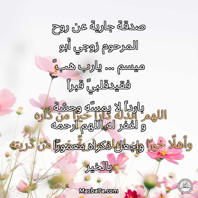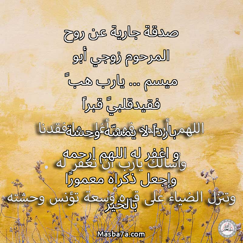 صدقة جارية عن روح المرحوم زوجي أبو ميسم ... يارب هب ♡ فقيدقلبي♡ قبراً بارداً لا يمسّه وحشة و اغفر له اللهم ارحمه وإجعل ذكراه معمورًا بالخير