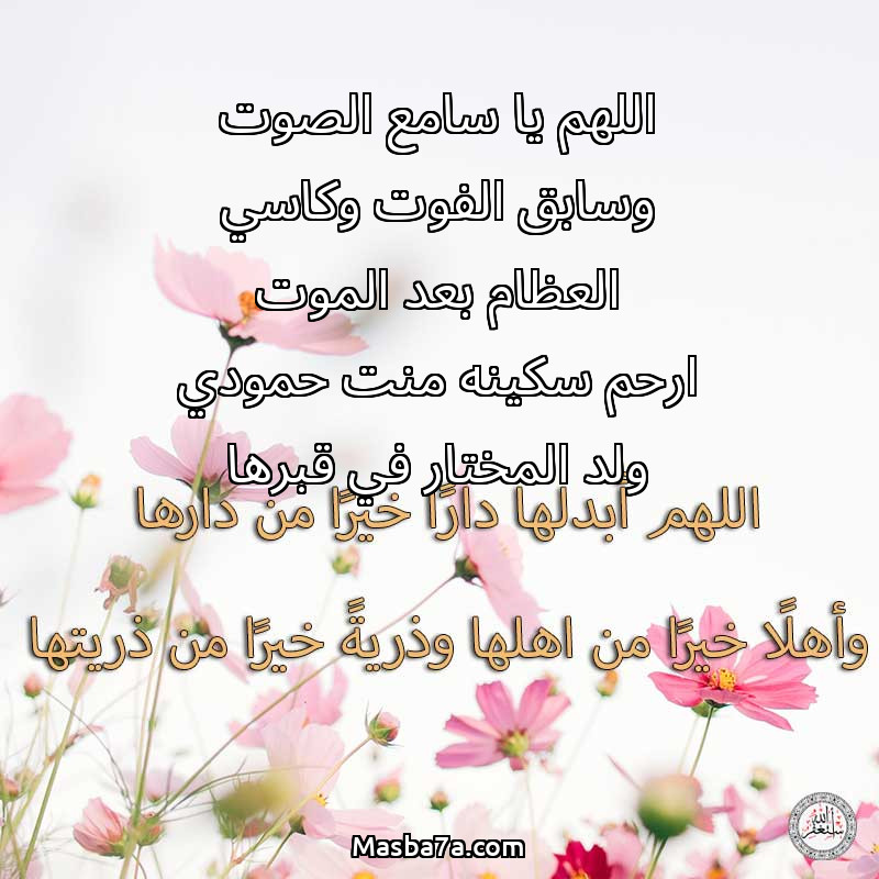 دعاء عن روح المرحومة اللهم يا سامع الصوت وسابق الفوت وكاسي العظام بعد الموت ارحم سكينه منت حمودي ولد المختار في قبرها
