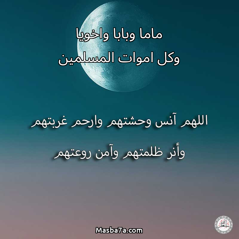 اللهم ارحم ( ماما وبابا واخويا وكل اموات المسلمين ) وانس وحشتهم واجمعنا بهم في جنتك ، اللهم ارحمهم بقدر شوقنا لهم اللهم ارحمهم واغفر لهم.