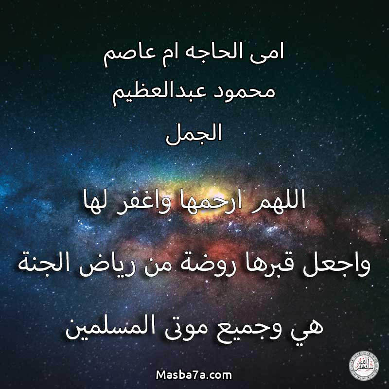 اللهم ارحم ( امى الحاجه ام عاصم محمود عبدالعظيم الجمل ) وانس وحشتها واجمعنا بها في جنتك ، اللهم ارحمها بقدر شوقنا لها اللهم ارحمها واغفر لها .