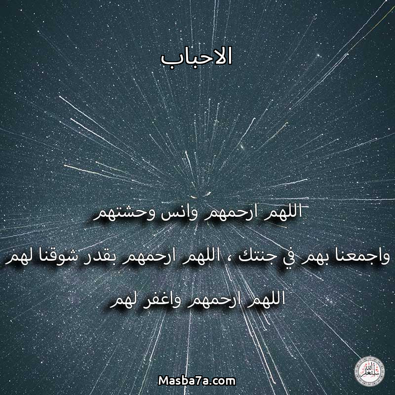 اللهم ارحم ( الاحباب ) وانس وحشتهم واجمعنا بهم في جنتك ، اللهم ارحمهم بقدر شوقنا لهم اللهم ارحمهم واغفر لهم.