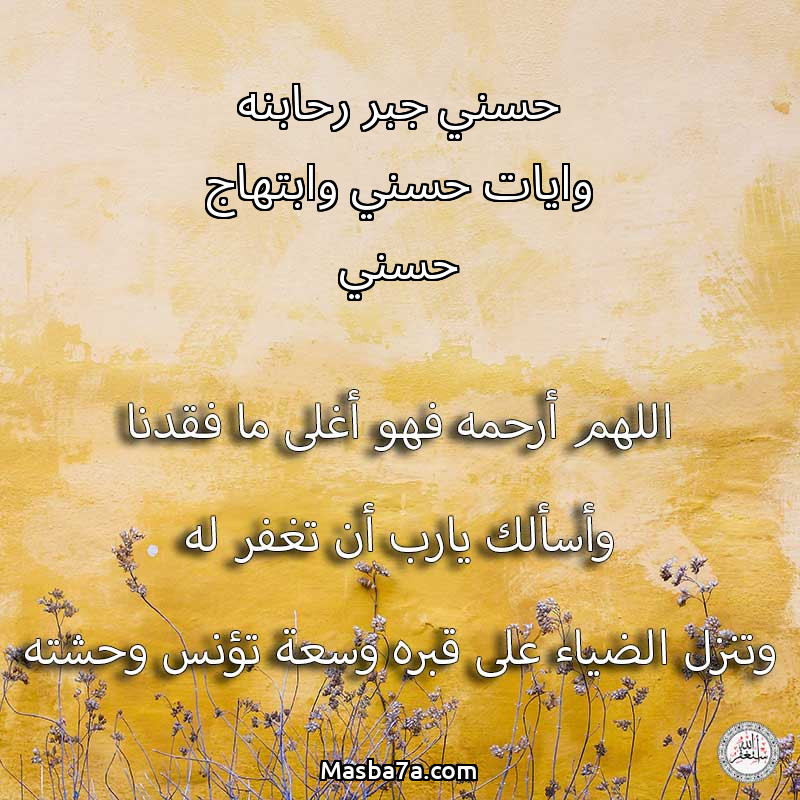 اللهم ارحم ( حسني جبر رحابنه وايات حسني وابتهاج حسني ) وانس وحشته واجمعنا به في جنتك ، اللهم ارحمه بقدر شوقنا له اللهم ارحمه واغفر له .