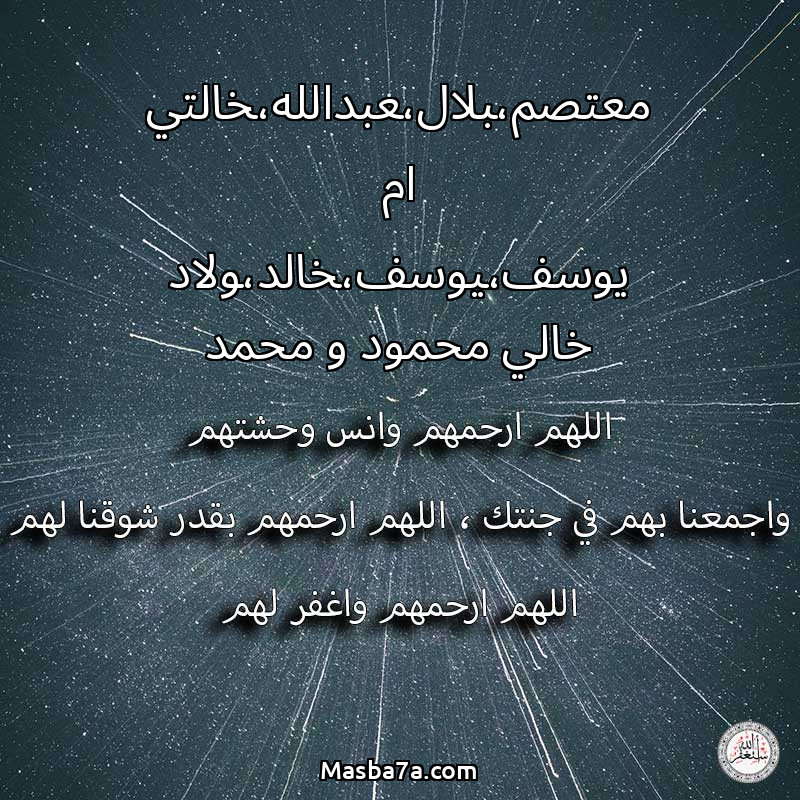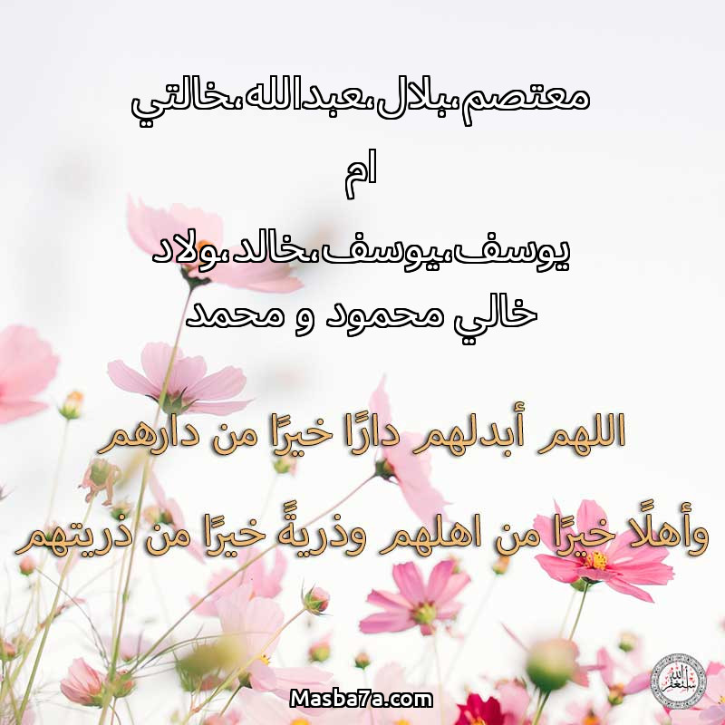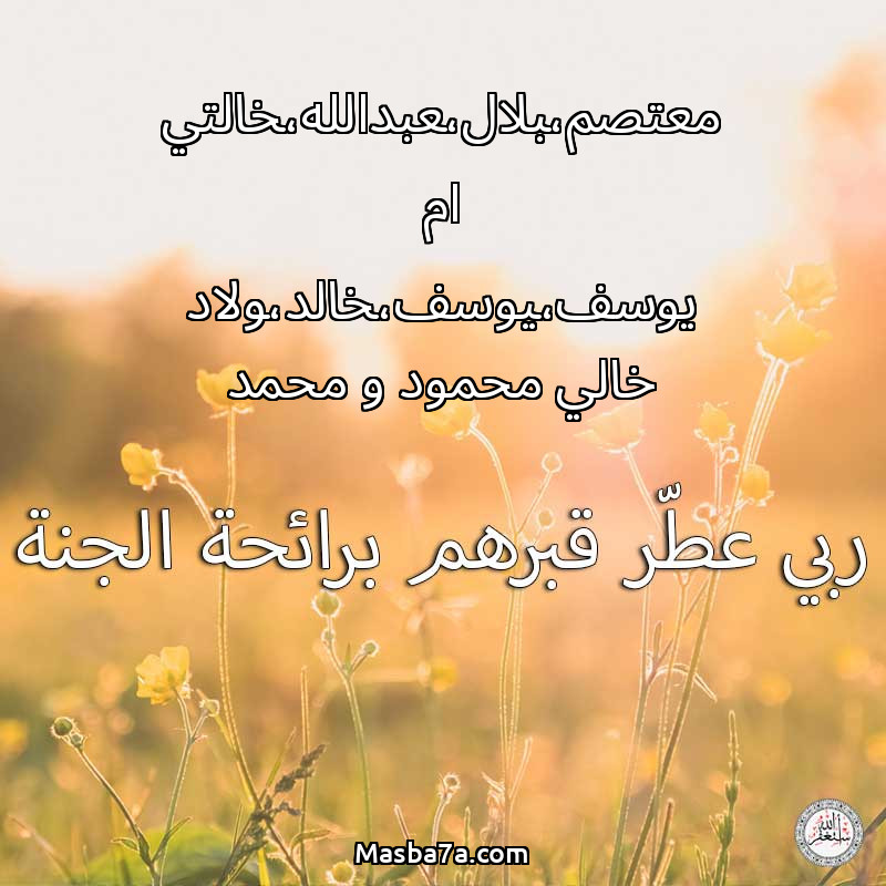 دعاء عن أرواح المرحومين معتصم،بلال،عبدالله،خالتي ام يوسف،يوسف،خالد،ولاد خالي محمود و محمد
