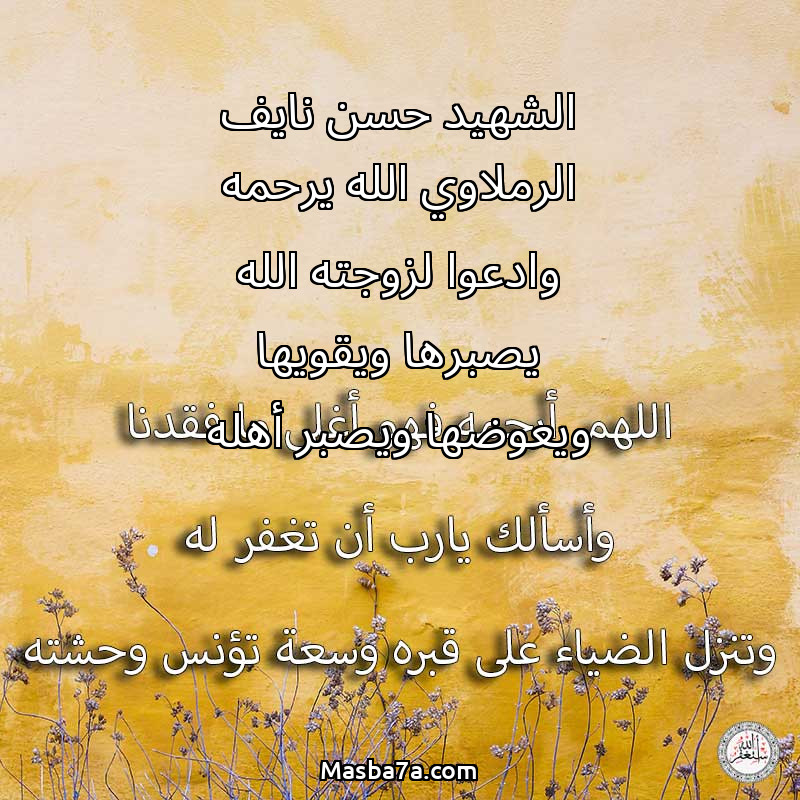 دعاء عن روح المرحوم الشهيد حسن نايف الرملاوي الله يرحمه وادعوا لزوجته الله يصبرها ويقويها ويعوضها ويصبر أهله