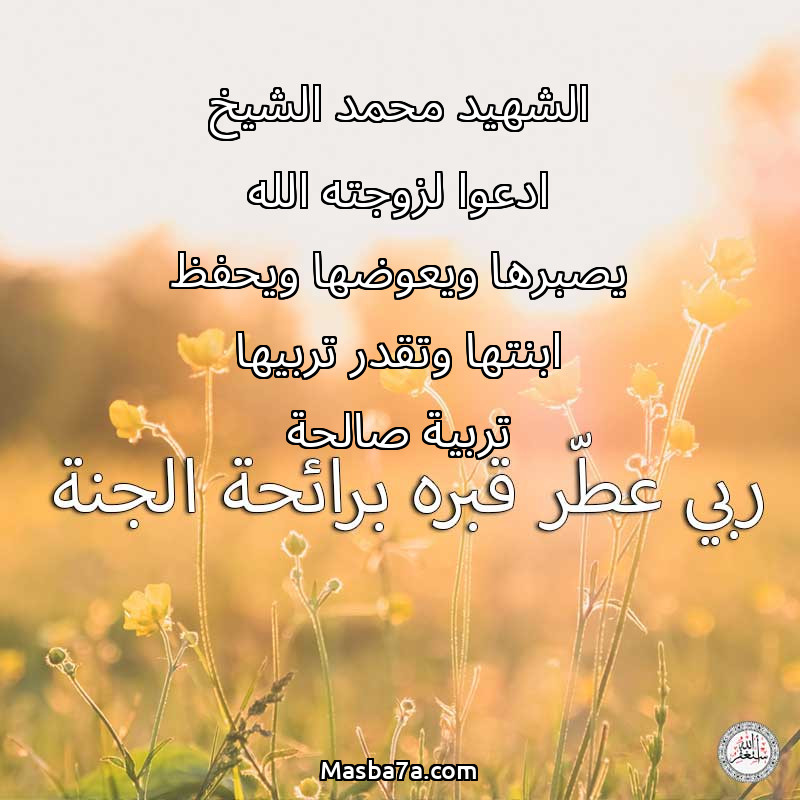 دعاء عن روح المرحوم الشهيد محمد الشيخ ادعوا لزوجته الله يصبرها ويعوضها ويحفظ ابنتها وتقدر تربيها تربية صالحة