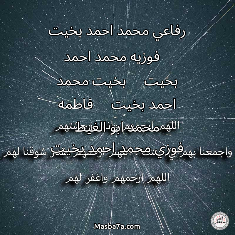 دعاء عن أرواح المرحومين رفاعي محمد احمد بخيت فوزيه محمد احمد بخيت بخيت محمد احمد بخيت فاطمه محمد ابو الغيط فوزي محمد احمد بخيت