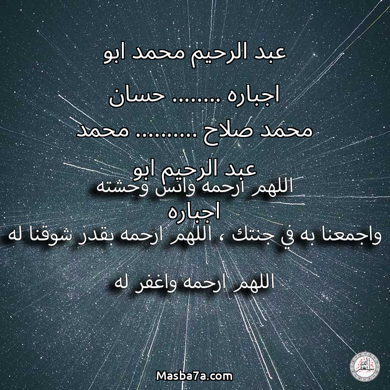 دعاء عن روح المرحوم عبد الرحيم محمد ابو اجباره ........ حسان محمد صلاح .......... محمد عبد الرحيم ابو اجباره