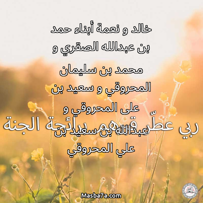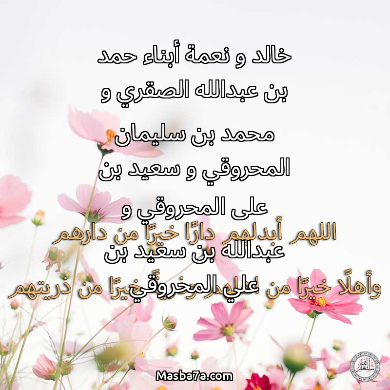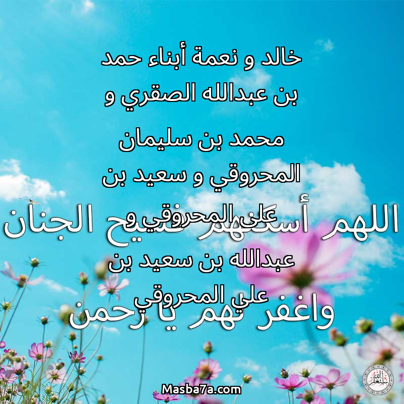 دعاء عن أرواح المرحومين خالد و نعمة أبناء حمد بن عبدالله الصقري و محمد بن سليمان المحروقي و سعيد بن على المحروقي و عبدالله بن سعيد بن علي المحروقي