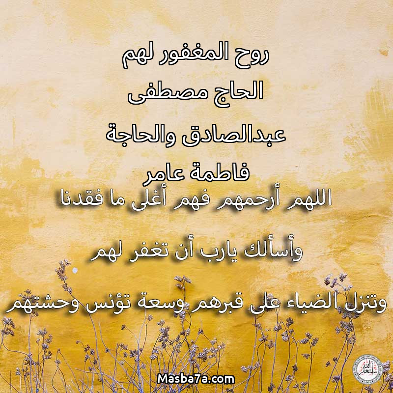 دعاء عن أرواح المرحومين روح المغفور لهم الحاج مصطفى عبدالصادق والحاجة فاطمة عامر