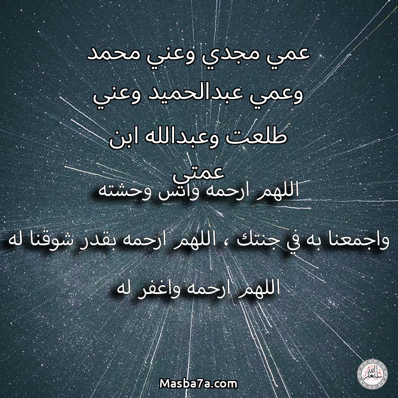 دعاء عن روح المرحوم عمي مجدي وعني محمد وعمي عبدالحميد وعني طلعت وعبدالله ابن عمتي