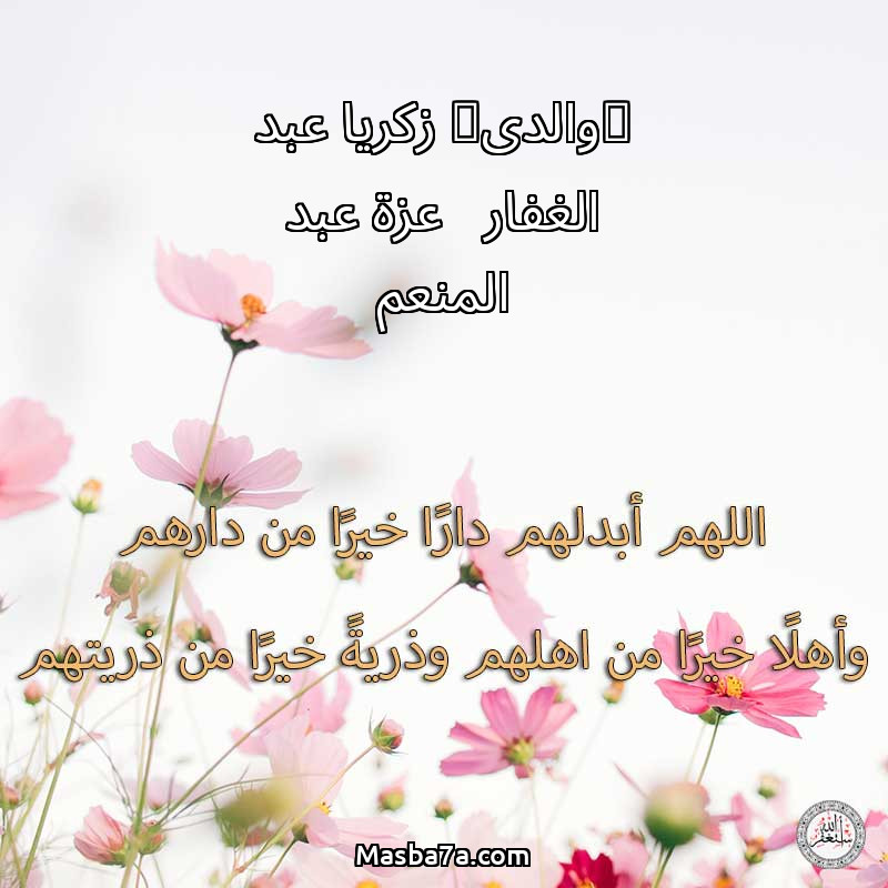 اللهم ارحم ( (والدى) زكريا عبد الغفار - عزة عبد المنعم ) وانس وحشتهم واجمعنا بهم في جنتك ، اللهم ارحمهم بقدر شوقنا لهم اللهم ارحمهم واغفر لهم.