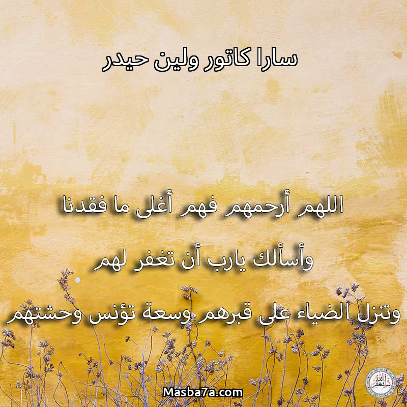 اللهم ارحم ( سارا كاتور ولين حيدر ) وانس وحشتهم واجمعنا بهم في جنتك ، اللهم ارحمهم بقدر شوقنا لهم اللهم ارحمهم واغفر لهم.