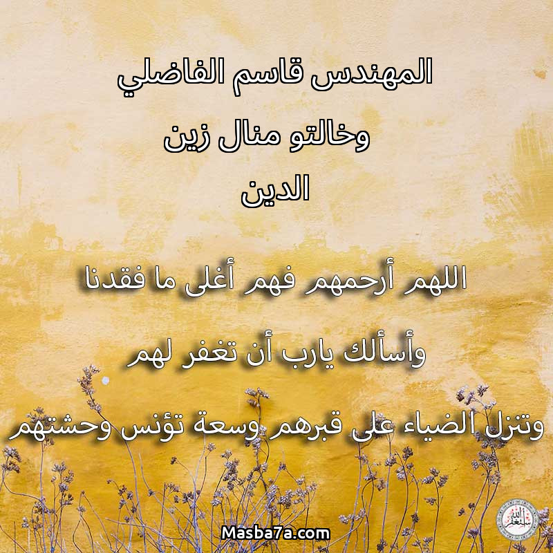دعاء عن أرواح المرحومين المهندس قاسم الفاضلي وخالتو منال زين الدين