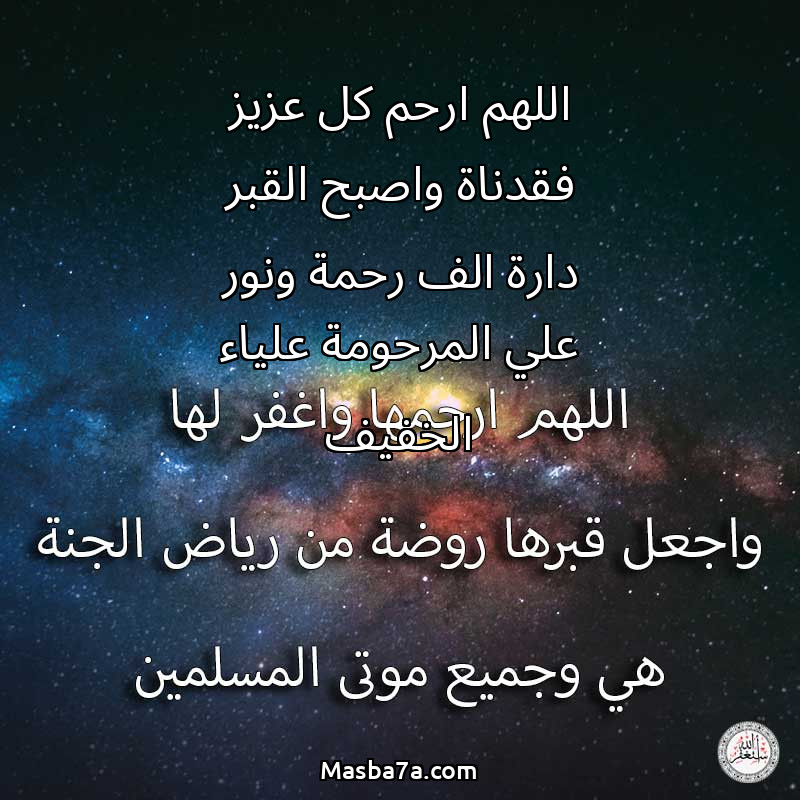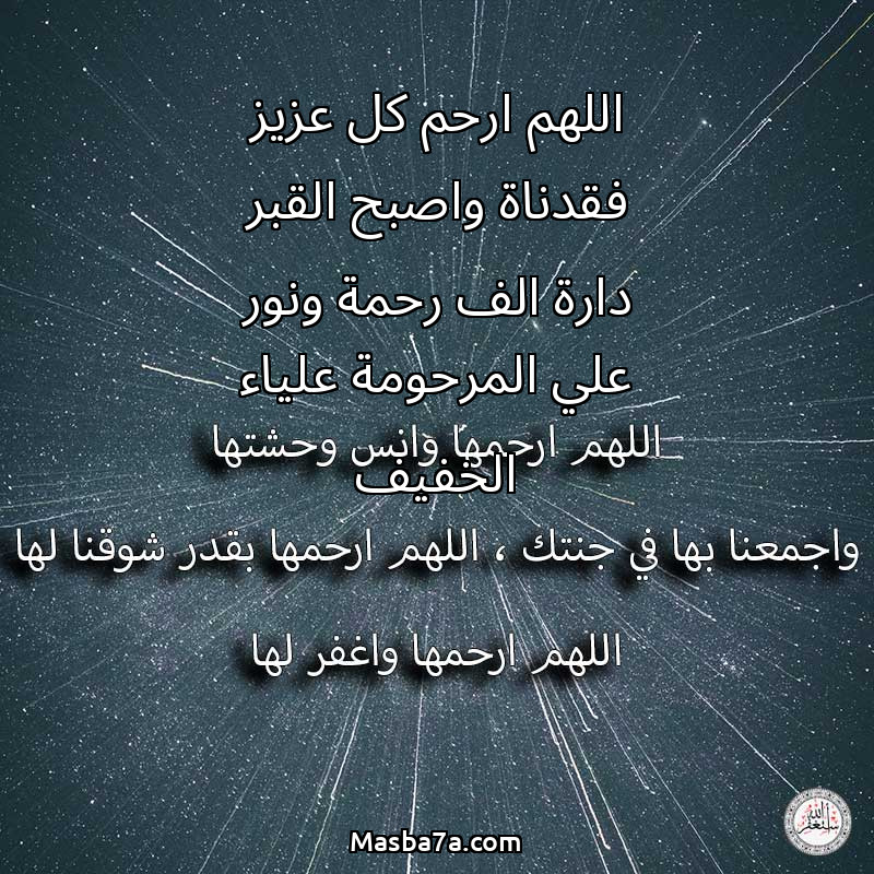 دعاء عن روح المرحومة اللهم ارحم كل عزيز فقدناة واصبح القبر دارة الف رحمة ونور علي المرحومة علياء الخفيف