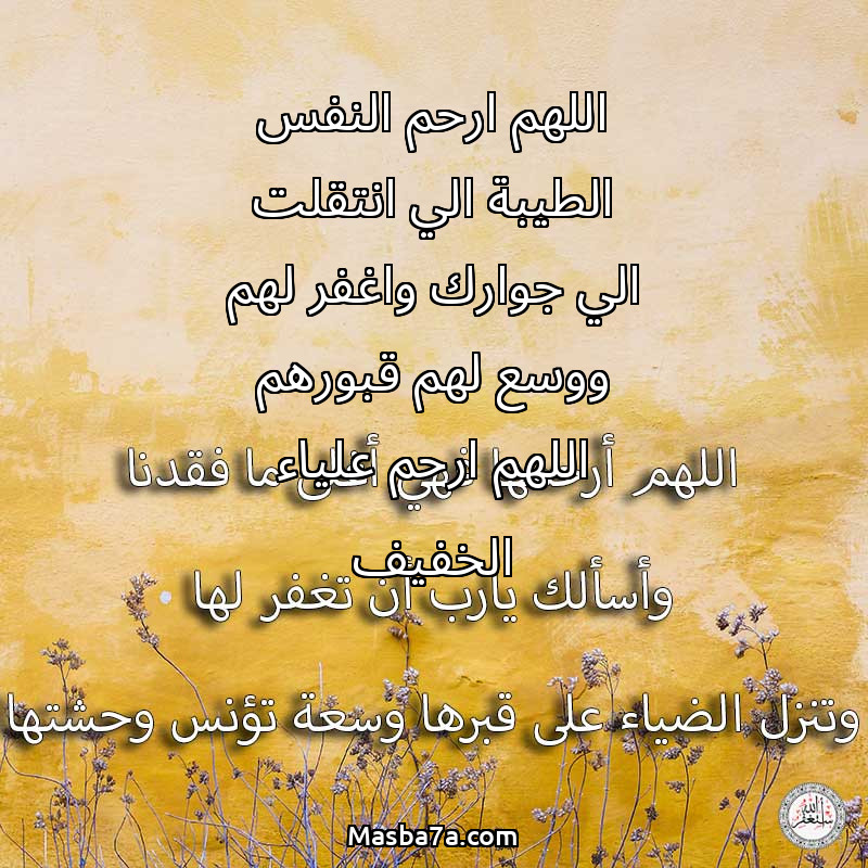 دعاء عن روح المرحومة اللهم ارحم النفس الطيبة الي انتقلت الي جوارك واغفر لهم ووسع لهم قبورهم اللهم ارحم علياء الخفيف