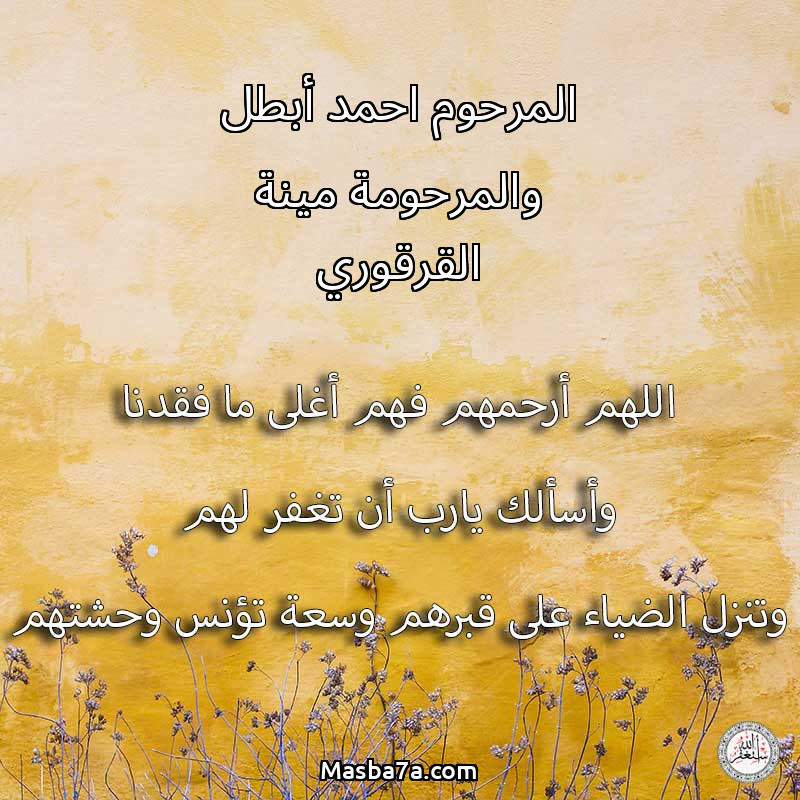 اللهم ارحم ( المرحوم احمد أبطل والمرحومة مينة القرقوري ) وانس وحشتهم واجمعنا بهم في جنتك ، اللهم ارحمهم بقدر شوقنا لهم اللهم ارحمهم واغفر لهم.