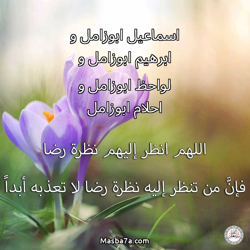 اللهم ارحم ( اسماعيل ابوزامل و ابرهيم ابوزامل و لواحظ ابوزامل و احلام ابوزامل ) وانس وحشتهم واجمعنا بهم في جنتك ، اللهم ارحمهم بقدر شوقنا لهم اللهم ارحمهم واغفر لهم.