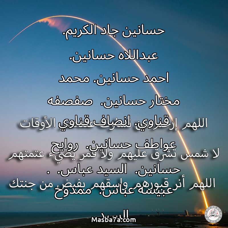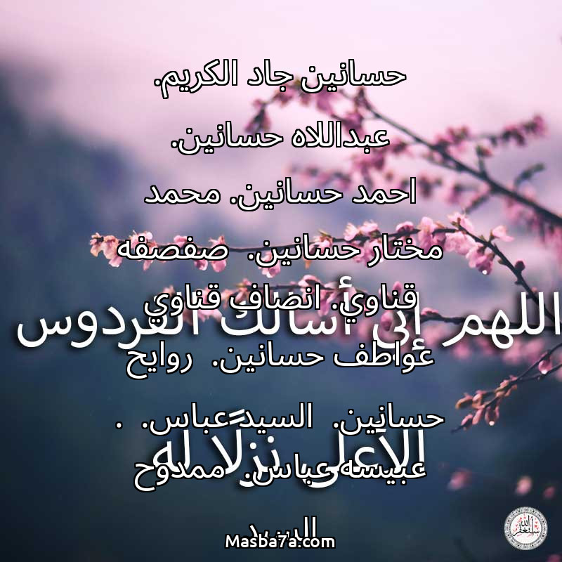اللهم ارحم ( حسانين جاد الكريم. عبداللاه حسانين. احمد حسانين. محمد مختار حسانين. صفصفه قناوي. انصاف قناوي عواطف حسانين. روايح حسانين. السيد عباس. . عبيسه عباس. ممدوح السيد ) وانس وحشته واجمعنا به في جنتك ، اللهم ارحمه بقدر شوقنا له اللهم ارحمه واغفر له .