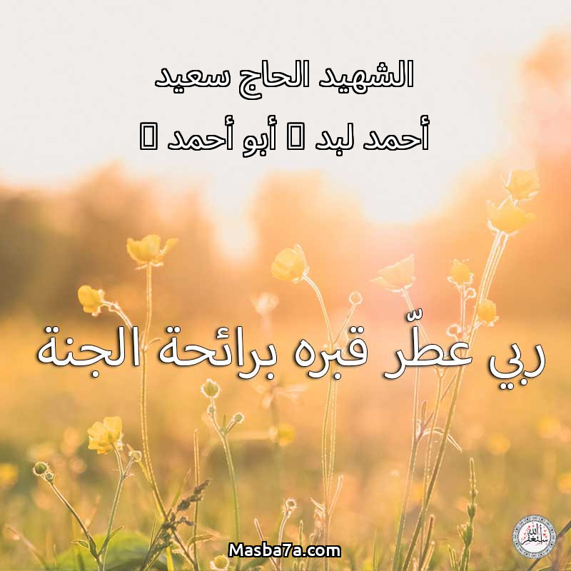 اللهم ارحم ( الشهيد الحاج سعيد أحمد لبد " أبو أحمد " ) وانس وحشته واجمعنا به في جنتك ، اللهم ارحمه بقدر شوقنا له اللهم ارحمه واغفر له .