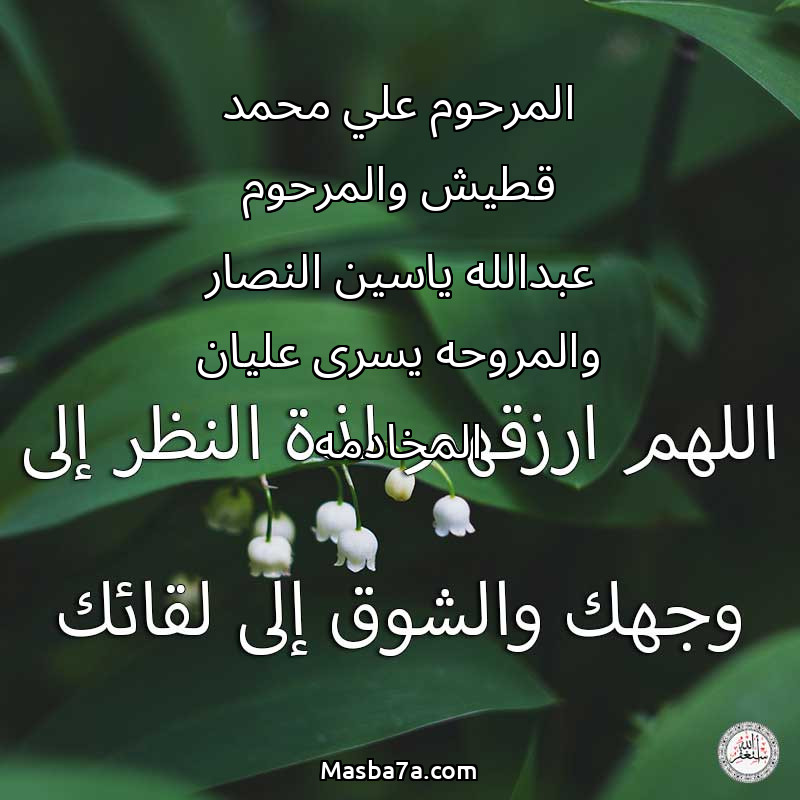 دعاء عن أرواح المرحومين المرحوم علي محمد قطيش والمرحوم عبدالله ياسين النصار والمروحه يسرى عليان المخادمه