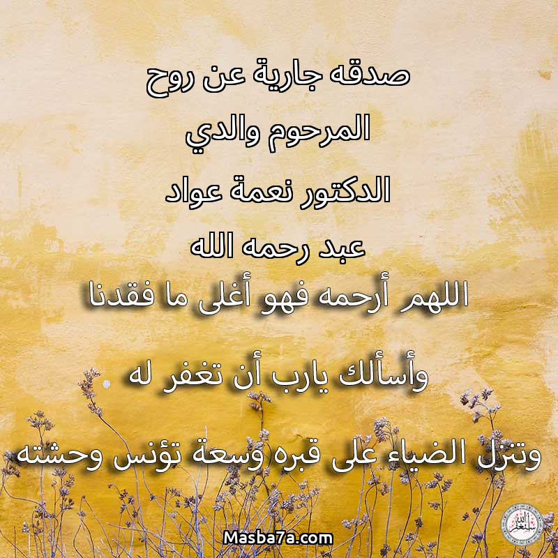 دعاء عن روح المرحوم صدقه جارية عن روح المرحوم والدي الدكتور نعمة عواد عبد رحمه الله