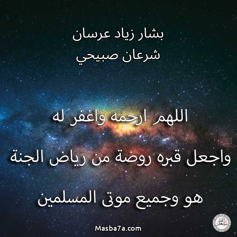 اللهم ارحم ( بشار زياد عرسان شرعان صبيحي ) وانس وحشته واجمعنا به في جنتك ، اللهم ارحمه بقدر شوقنا له اللهم ارحمه واغفر له .