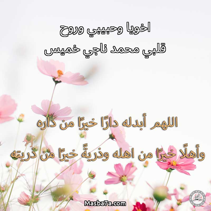 اللهم ارحم ( اخويا وحبيبي وروح قلبي محمد ناجي خميس ) وانس وحشته واجمعنا به في جنتك ، اللهم ارحمه بقدر شوقنا له اللهم ارحمه واغفر له .