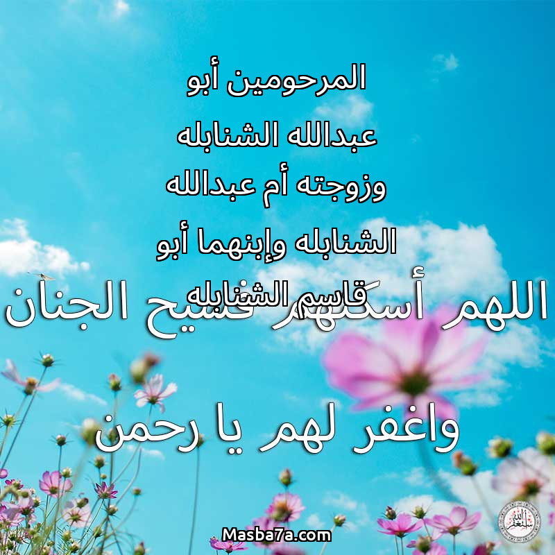 دعاء عن أرواح المرحومين المرحومين أبو عبدالله الشنابله وزوجته أم عبدالله الشنابله وإبنهما أبو قاسم الشنابله