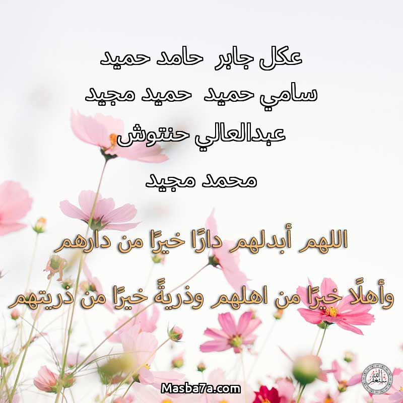 دعاء عن أرواح المرحومين عكل جابر حامد حميد سامي حميد حميد مجيد عبدالعالي حنتوش محمد مجيد
