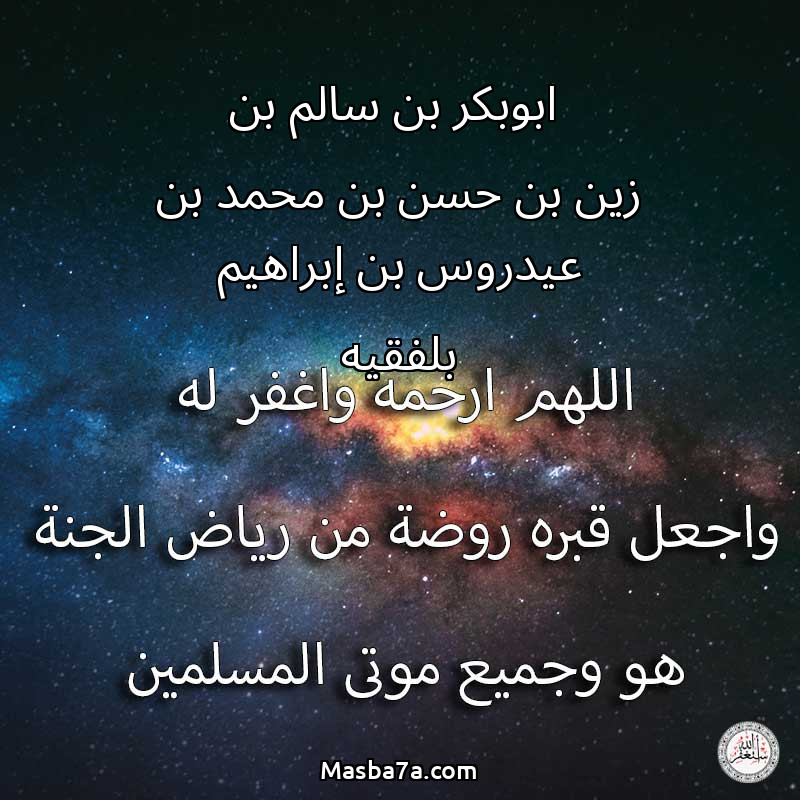 دعاء عن روح المرحوم ابوبكر بن سالم بن زين بن حسن بن محمد بن عيدروس بن إبراهيم بلفقيه