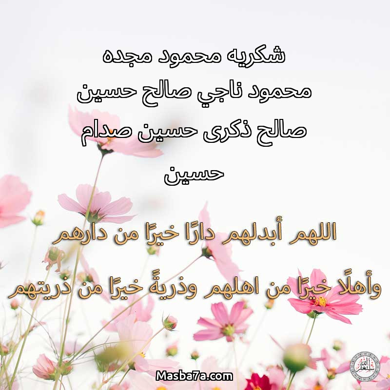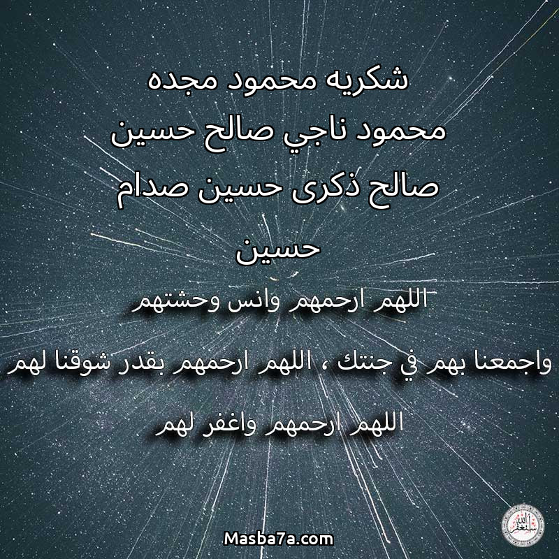 دعاء عن أرواح المرحومين شكريه محمود مجده محمود ناجي صالح حسين صالح ذكرى حسين صدام حسين