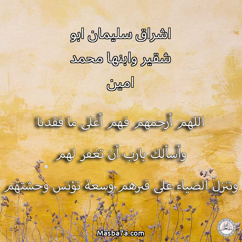 دعاء عن أرواح المرحومين اشراق سليمان ابو شقير وابنها محمد امين