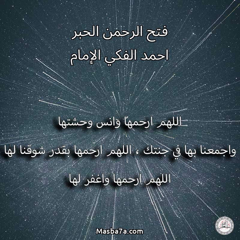 اللهم ارحم ( فتح الرحمن الحبر احمد الفكي الإمام ) وانس وحشتها واجمعنا بها في جنتك ، اللهم ارحمها بقدر شوقنا لها اللهم ارحمها واغفر لها .