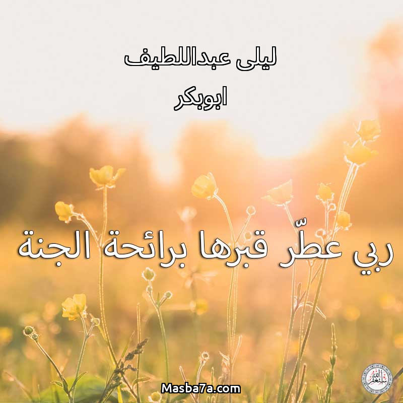 اللهم ارحم ( ليلى عبداللطيف ابوبكر ) وانس وحشتها واجمعنا بها في جنتك ، اللهم ارحمها بقدر شوقنا لها اللهم ارحمها واغفر لها .