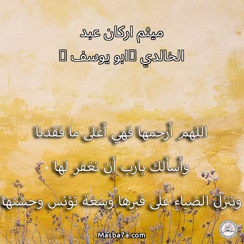 اللهم ارحم ( ميثم اركان عبد الخالدي (ابو يوسف ) ) وانس وحشتها واجمعنا بها في جنتك ، اللهم ارحمها بقدر شوقنا لها اللهم ارحمها واغفر لها .