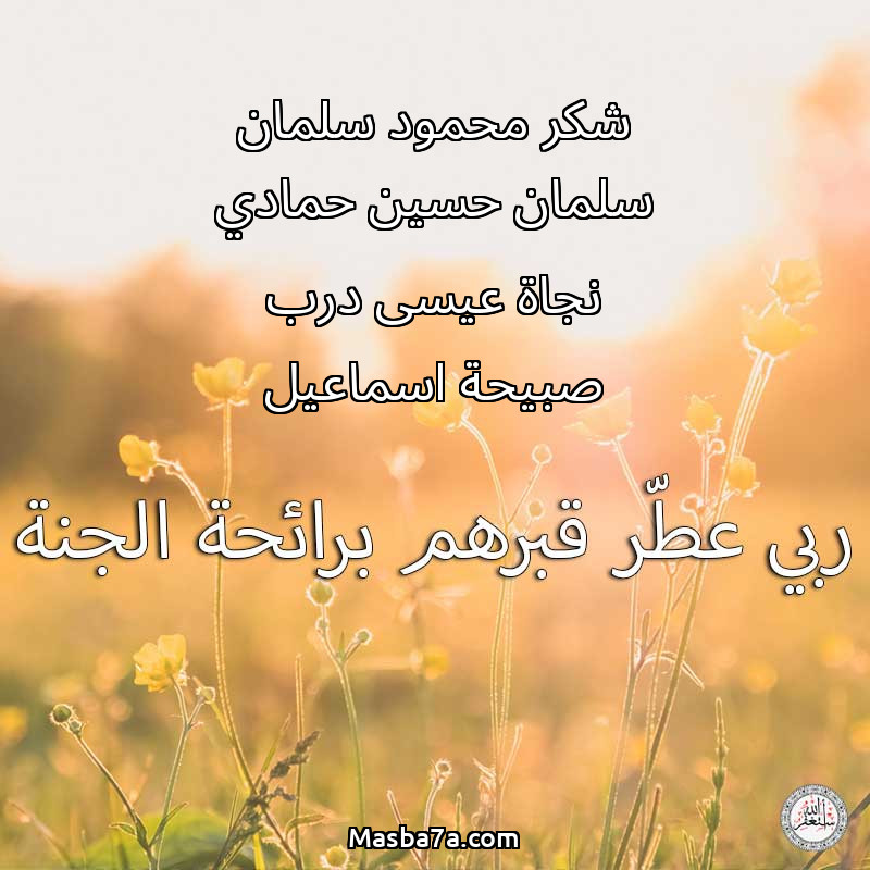 دعاء عن أرواح المرحومين شكر محمود سلمان سلمان حسين حمادي نجاة عيسى درب صبيحة اسماعيل
